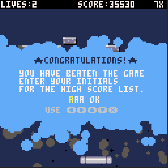 One of the best Breakout/Arkanoid clones I've ever played. The only thing I would like to see would be the ability to enter your initials onto the score table without having to complete the game.